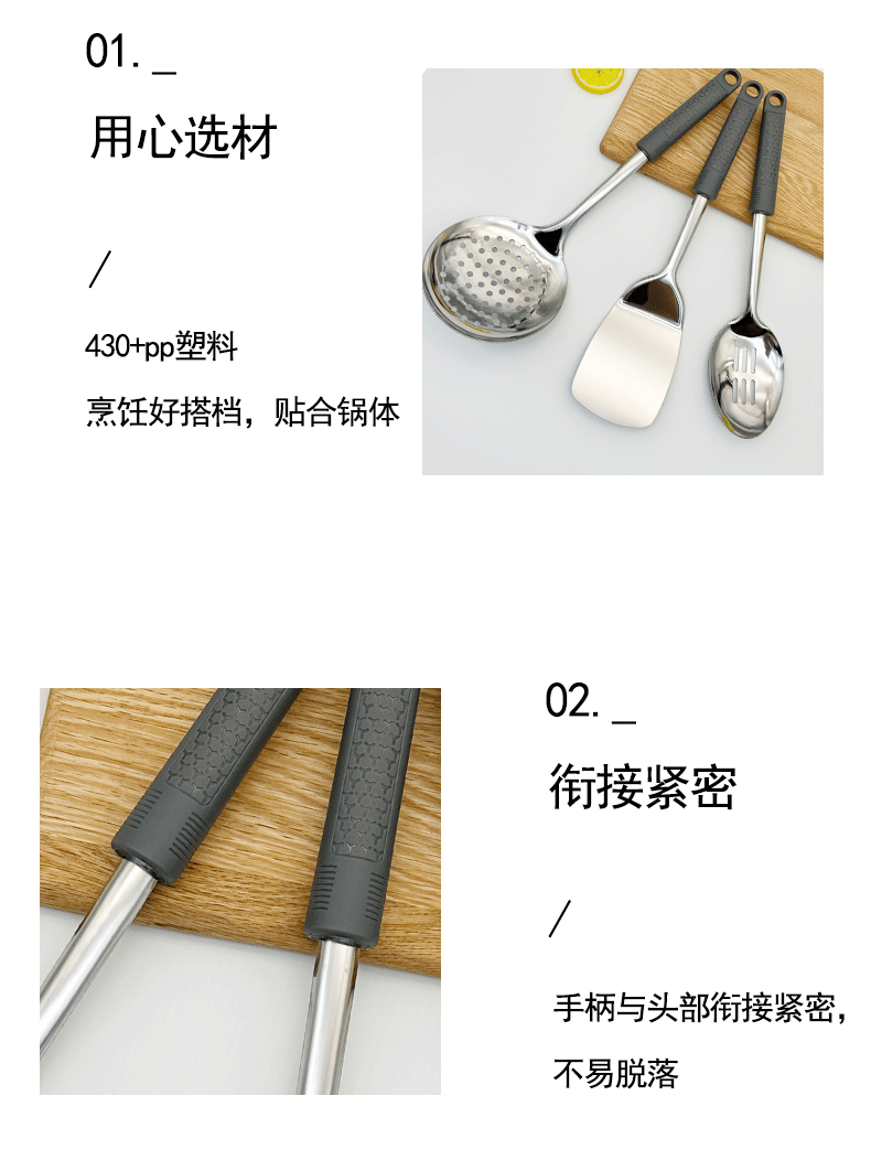 Stainless Steel Cooking Spatula Kitchen Hot Pot Soup Spoon Colander Frying Spatula Set Home Cooking Spoon Spatula 10-Piece Kitchenware Set